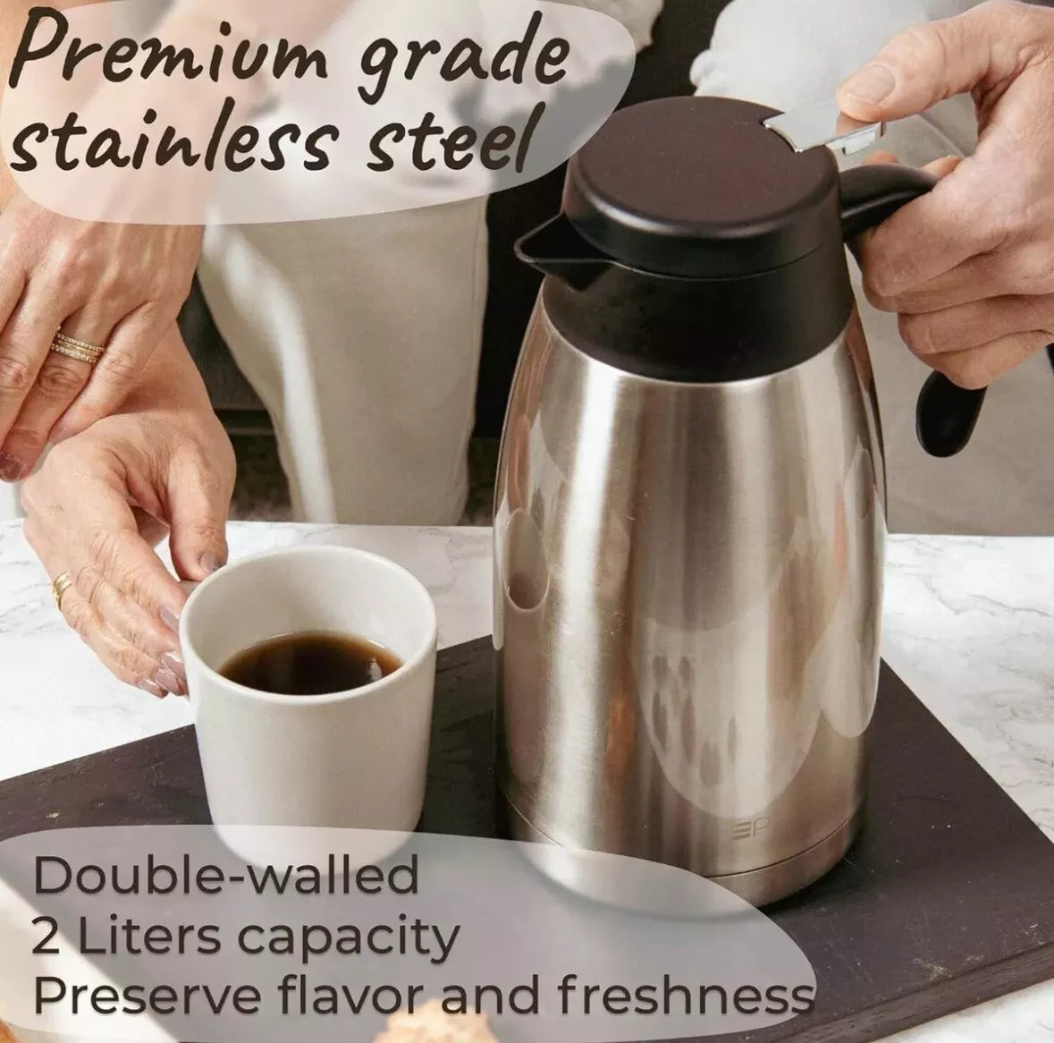 PYKAL Thermoskanne 2 Liter Thermo Isolierkanne Kaffekanne Heiß, Kalt Edelstahl