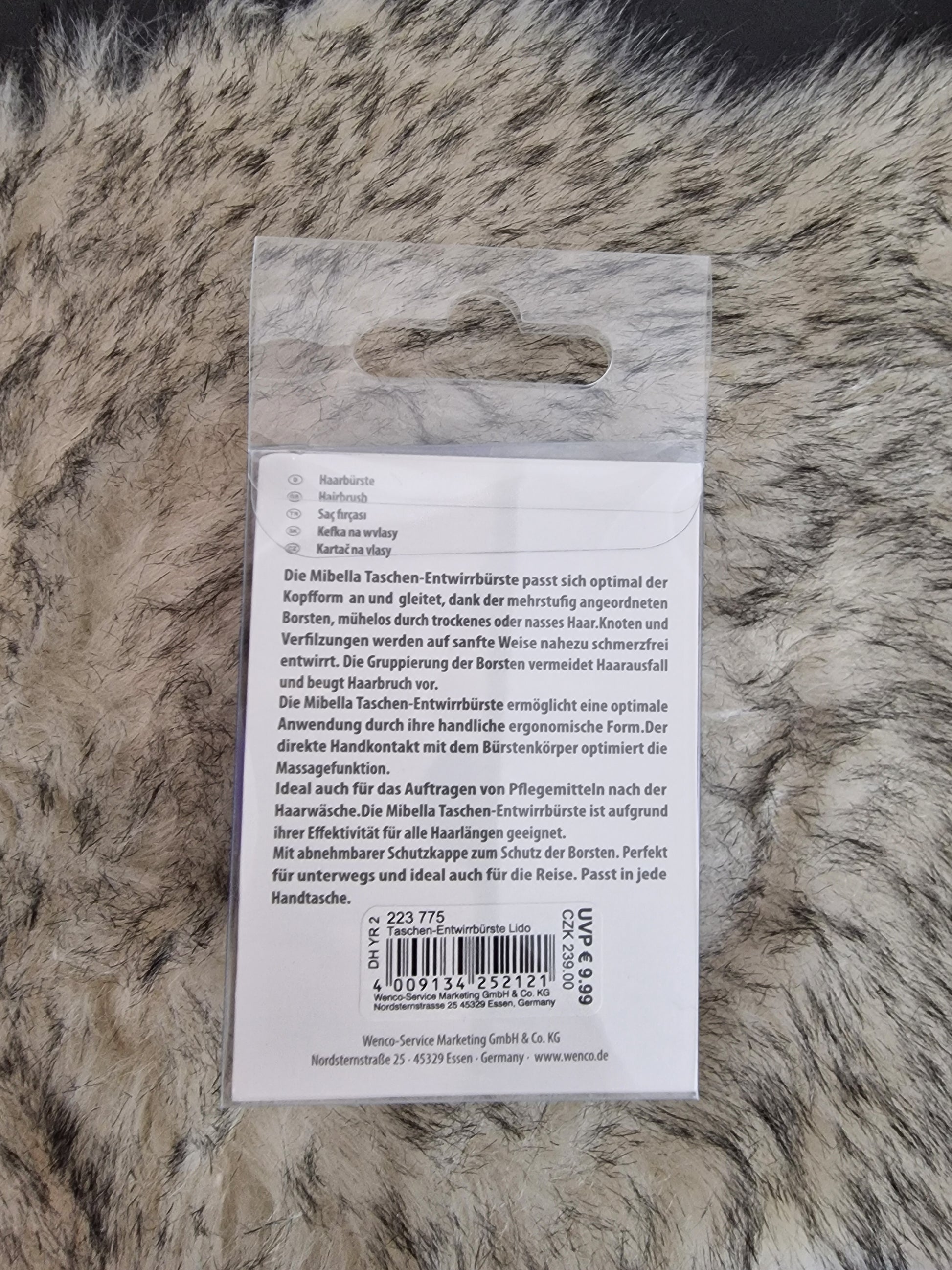 Die Mibella Taschen-Entwirrbürste passt sich optimal der Kopfform an und gleitet, dank der mehrstufig angeordneten Borsten, mühelos durch trockenes oder nasses Haar. Knoten und Verfilzungen werden auf sanfte Weise nahezu schmerzfrei entwirft. Die Gruppierung der Borsten vermeidet Haarausfall und beugt Haarbruch vor.